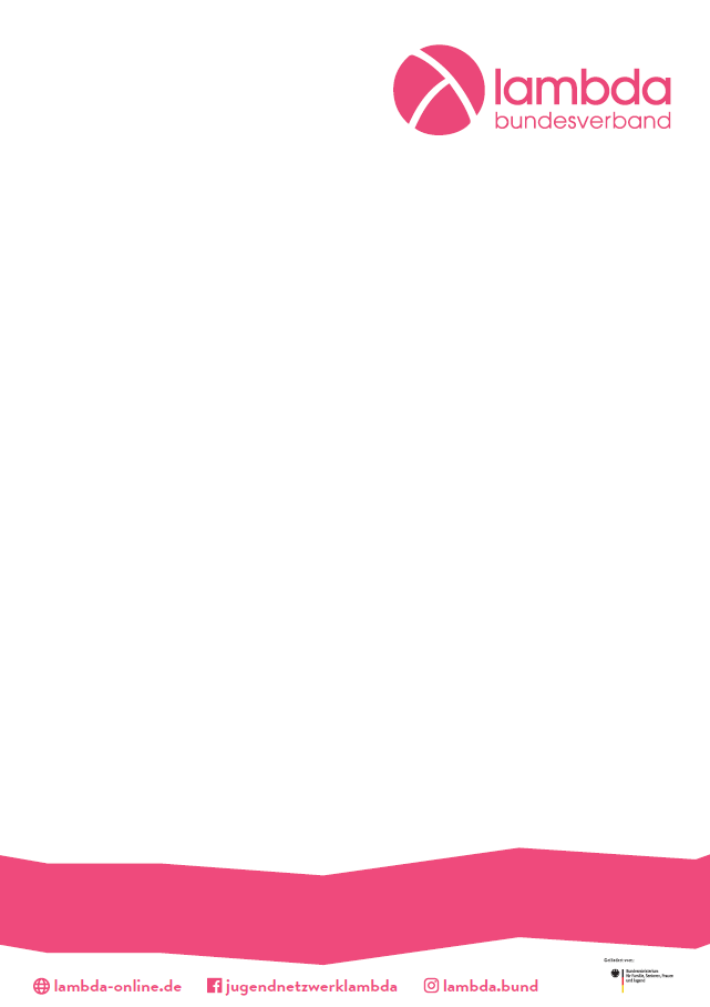 - 31.05.2023: Gemeinsame Stellungnahme des Jugendnetzwerk Lambda, sowie der Landesverbände Lambda Baden-Württemberg, Lambda Bayern, Lambda Nord zum Entwurf des Selbstbestimmungsgesetzes